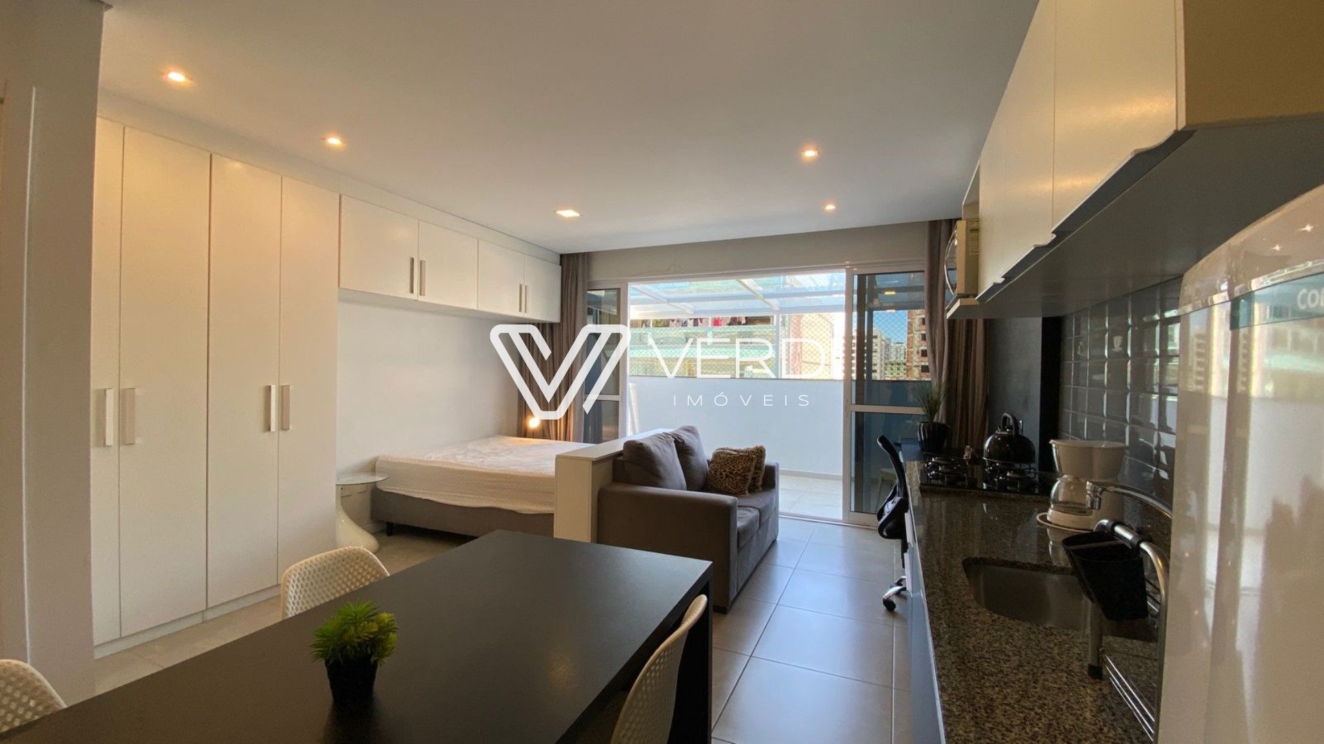 O imóvel possui espaços integrados, sala e cozinha com móveis sob medida, eletrodomésticos e um terraço privativo, além de uma excelente posição solar.
